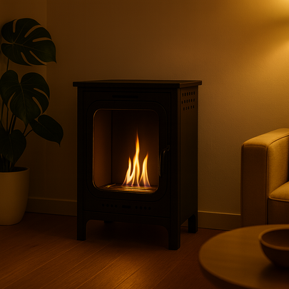 Biokominek GMT spala specjalne paliwo roślinne – bioetanol, które w wyniku spalania daje prawdziwy ogień, ale bez dymu, zapachu i popiołu. Nie wymaga komina ani instalacji — wystarczy wlać paliwo, zapalić i cieszyć się płomieniem.
