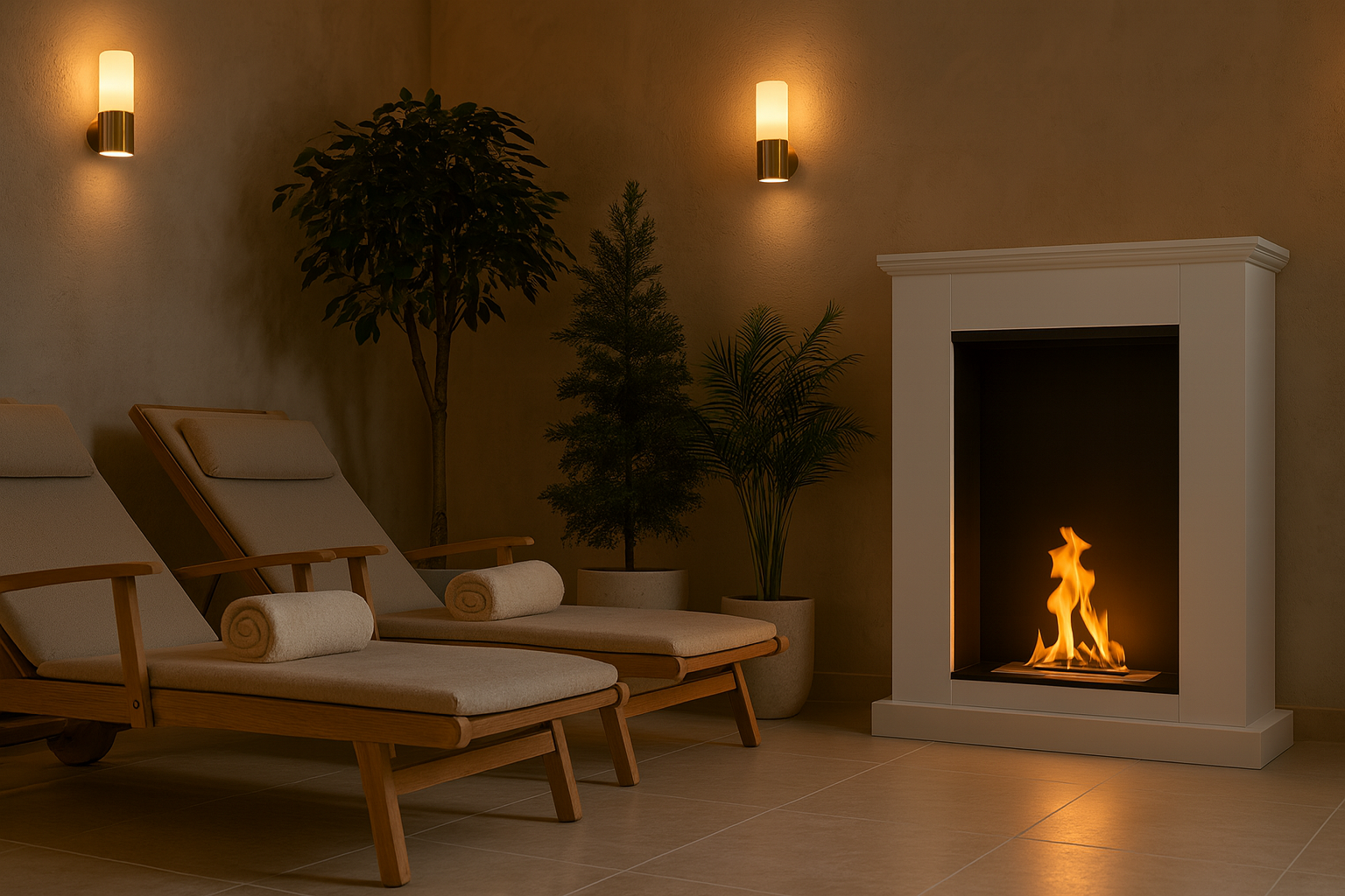 Nie wymagają komina ani podłączenia do instalacji gazowej, dlatego można je montować w salonie, sypialni czy nawet w hotelowym SPA.