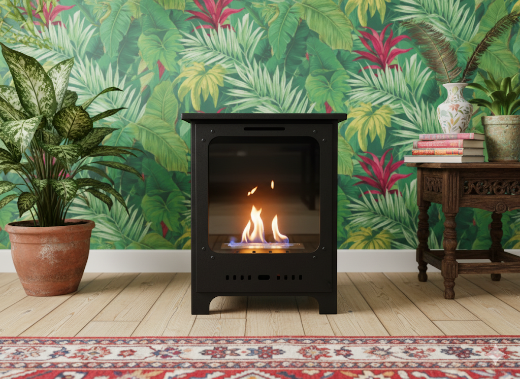 Spala się całkowicie, nie wytwarzając dymu, sadzy ani zapachu, dzięki czemu biokominek można stosować w każdym wnętrzu – nawet w mieszkaniu czy apartamencie.